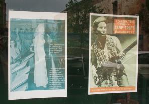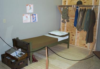 Typical barracks display: complete with wooden bunk, pin-ups, clothing,