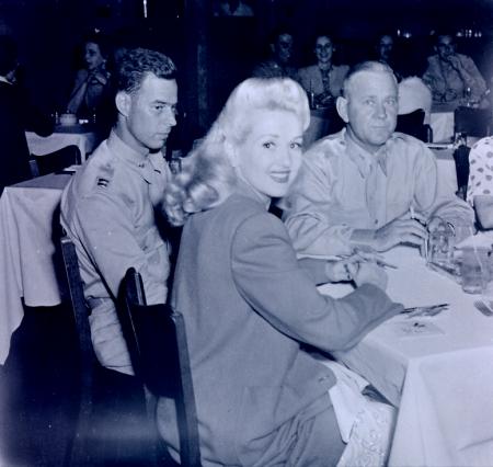 Grable dines with officers in an unknown location, possibly the officers mess.